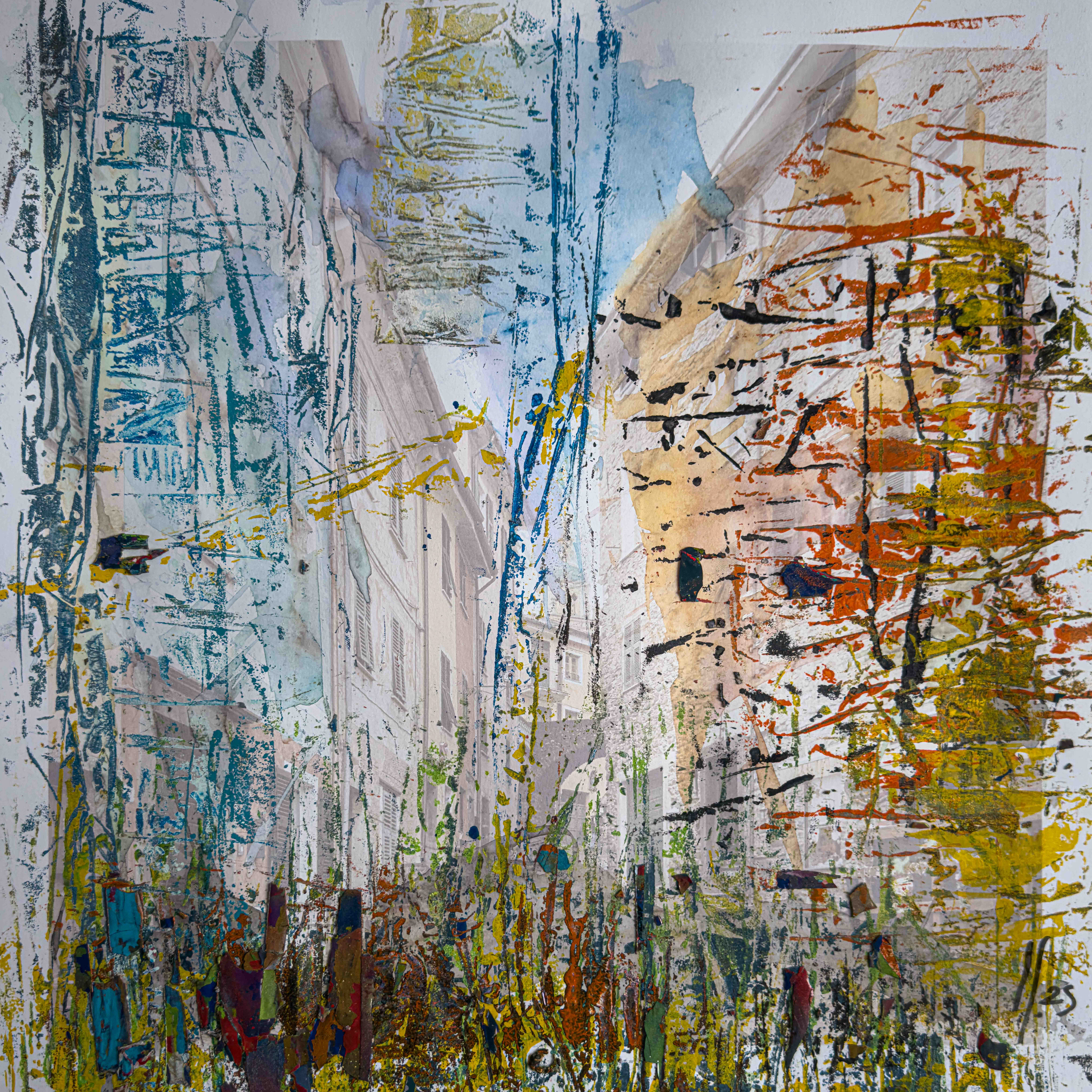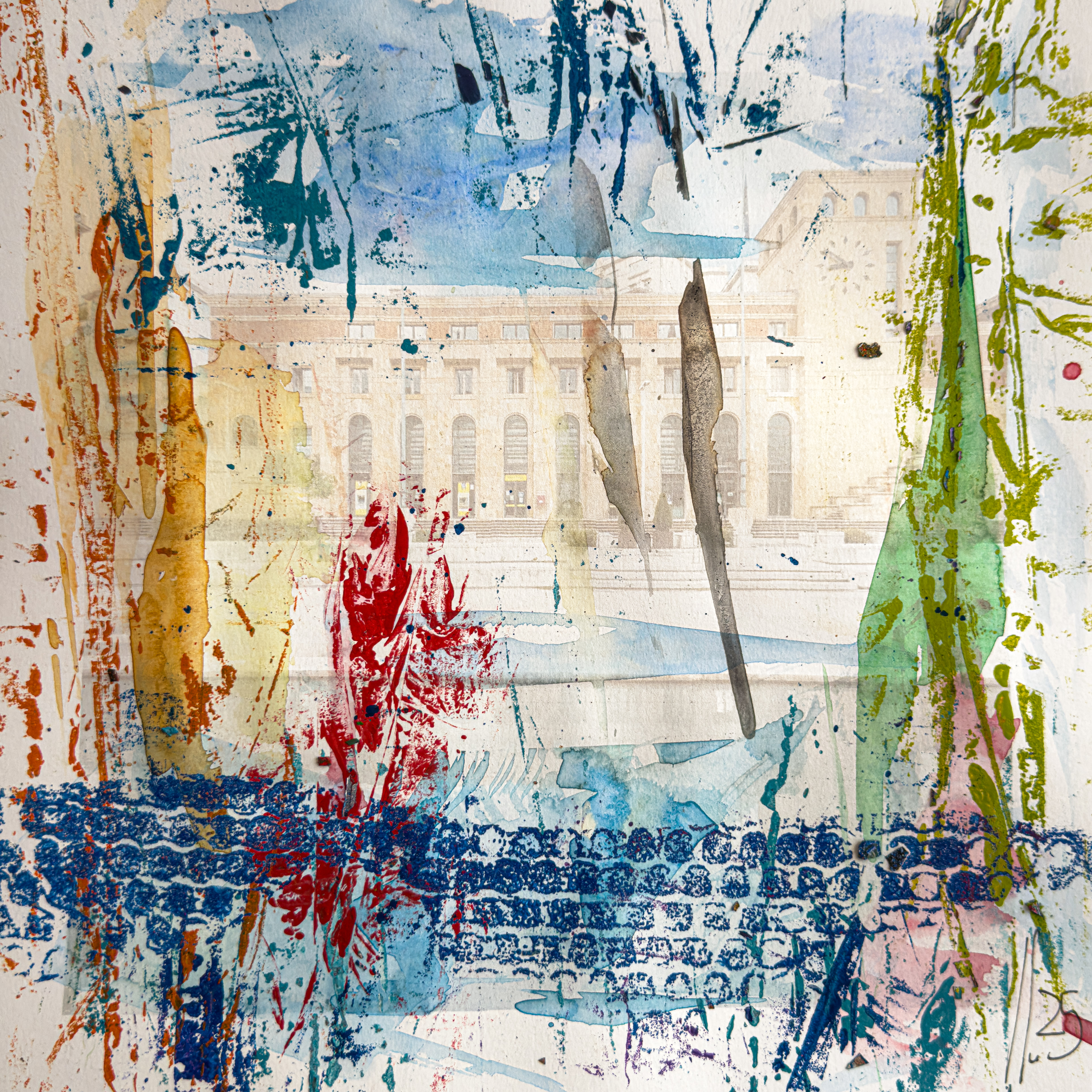 Nella Grecia Antica la parola Hodòs significava strada, percorso, l’indicazione che portava da luogo, anche una piazza, a un altro. Non è difficile intuire che da meta-hodòs abbia derivazione la parola metodo, ovvero lo strumento, meglio ancora la strada, che è capace di andare oltre la via stessa inducendo a superare un confine. Hodòs diviene così la metafora di un percorso che produce trasformazione attraverso il cammino. Le opere uniche realizzate da Carlo Alberto Cozzani, per Ance La Spezia, al di là della raffigurazione estesa sul confine tra astrazione e figurazione, grazie